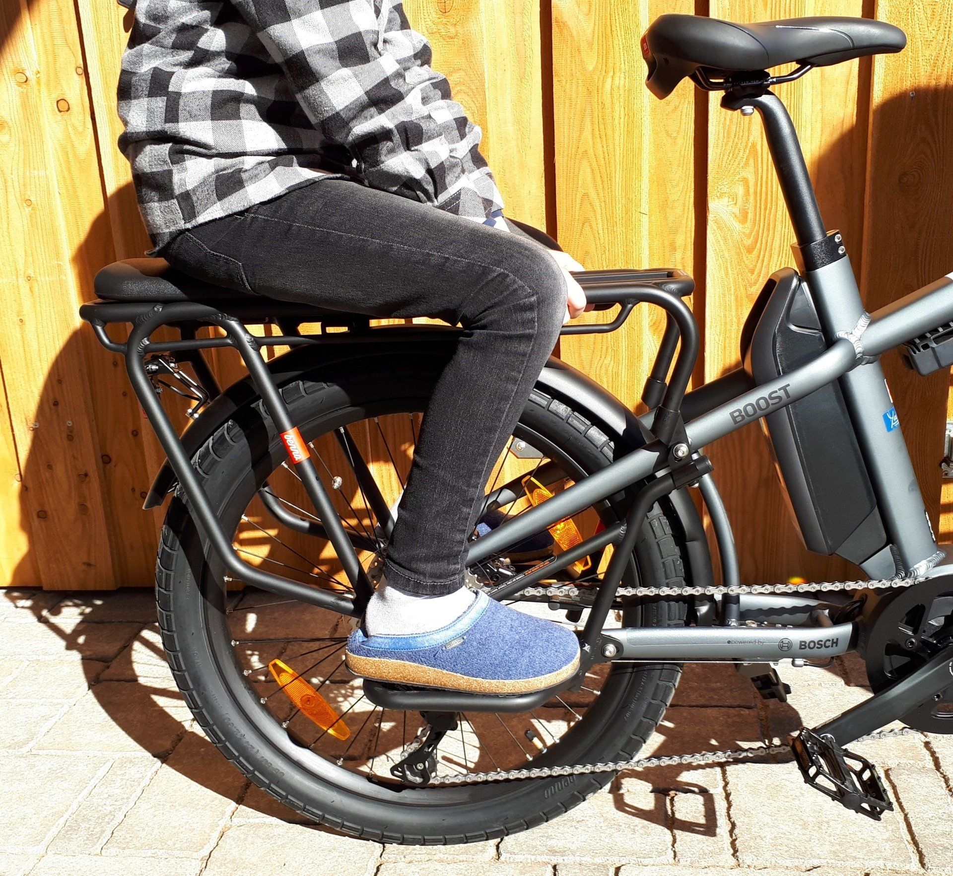 Das Boost E ist sehr flexibel, es hat hinten einen langen Gepäckträger (60 kg Tragkraft) und kann zusätzlich vorne mit einem Gepäckträger ausgerüstet werden (20 kg Tragkraft).